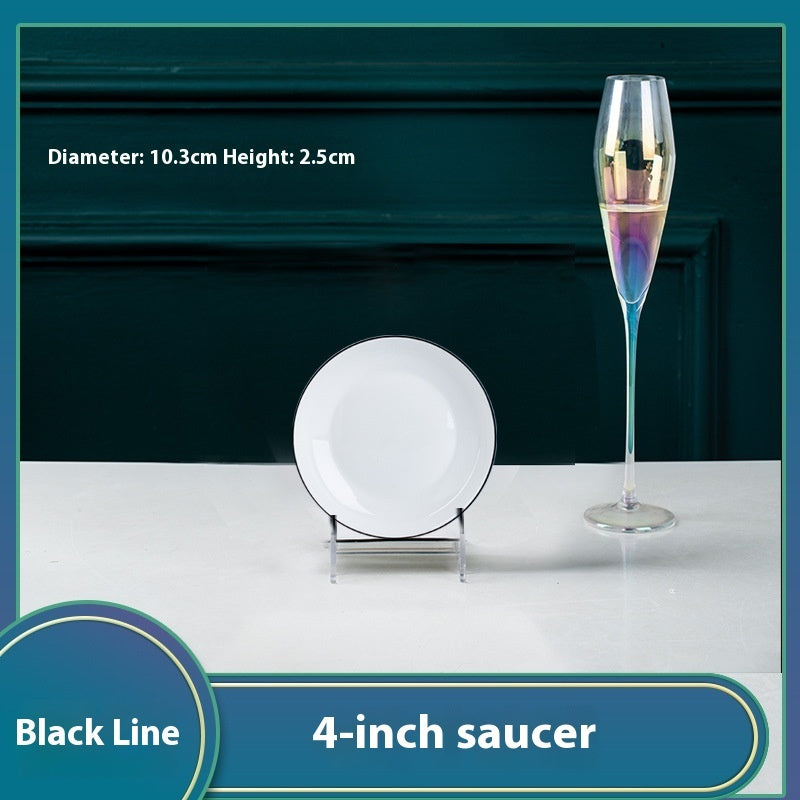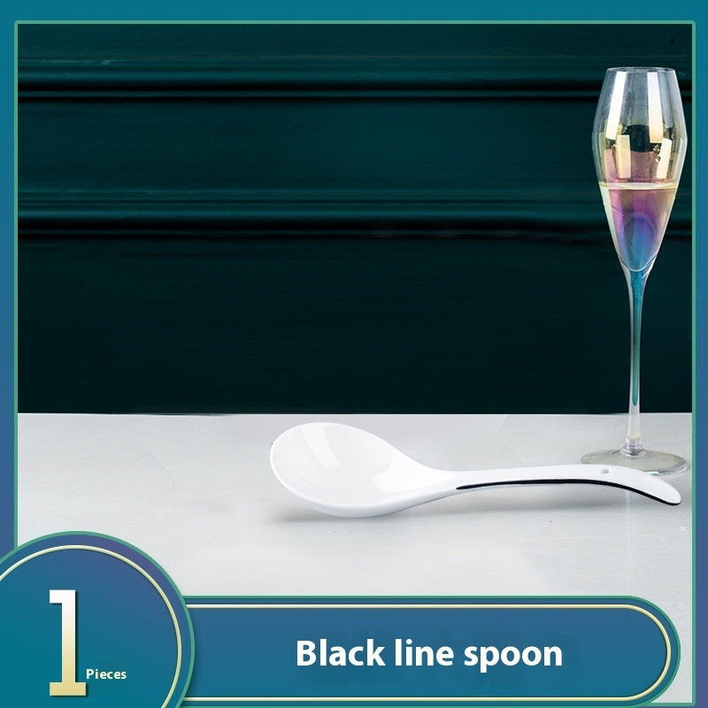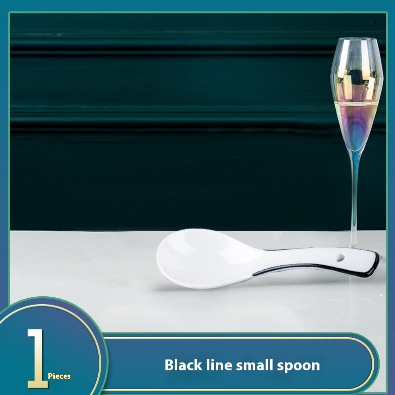Color: 4.5-inch round bowl (black line),4.5-inch square bowl (black line),5-inch round bowl (black line),6-inch noodle bowl (black line),7-inch disc (black line),7-inch square plate (black line),8-inch disc (black line),7 inch soup bowl (black line),9-inch premium pot (black line),12-inch fish dish (black line), spoon (black line), small Spoon (black line),10 pairs of gold chopsticks, 4-inch sauce plate (black line)